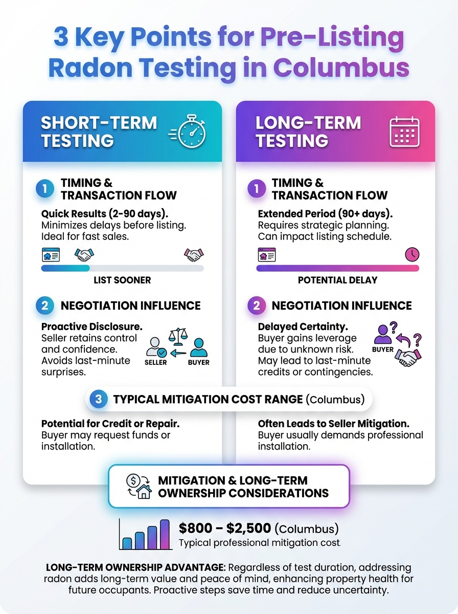 | What if the buyer wants additional testing? | Pre-listing testing does not prevent a buyer from testing again, but it gives you data early, helps you price realistically, and prepares you for negotiations, as we explain in our radon negotiation guide for home sales. |